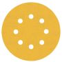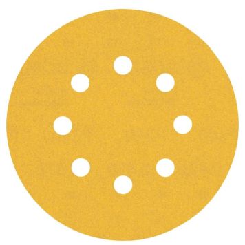 Sandpapiret har 8 hull for enklere fjerning av støv, og det har også borrelås på baksiden for raskt og enkelt å bytte ark.