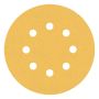 Sandpapiret har 8 hull for enklere fjerning av støv, og det har også borrelås på baksiden for raskt og enkelt å bytte ark.
