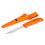 Én-komponents skaft gir et behagelig og sikkert grep. Leveres med en praktisk slire som kan festes i beltet. Spesialslire for doble kniver. Robust allroundkniv med solid blad av rustfritt stål. 100 mm bladlengde. 220 mm totallengde. Tilgjengelig i diskdisplay med 15 stk. kniver.