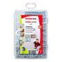 Innhold: 50 x universalplugg UX 6 x 35 R, 25 x universalplugg UX 8 x 50 R, 20 x skrue 4,5 x 45, 15 x skrue 5 x 65, 4 x kvadrat 5,5, x 70, 4 x rund krok 5,5 x 70