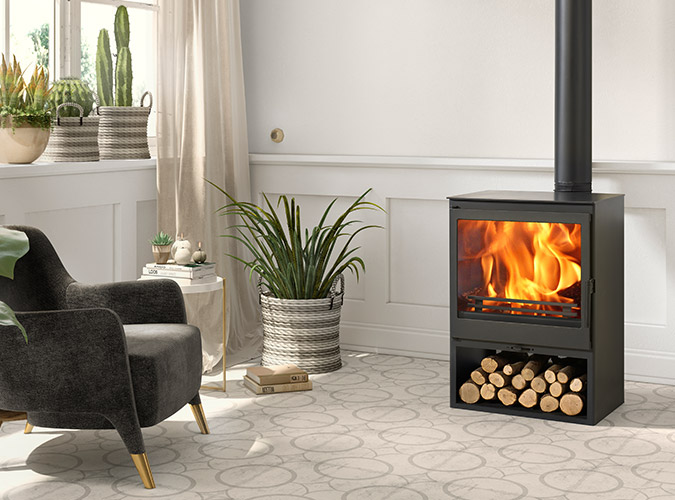 En moderne peisovn er designet for å få mest mulig varme ut av veden.
