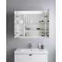 Speilskapet har et skandinavisk, stilrent og minimalistisk design og passer inn i ethvert baderom. Det bryter fint med innredning i klassisk stil eller forsterker et mer moderne uttrykk. Strømuttaket i skapets øverste høyre hjørne kan under montering flyttes til venstre hjørne dersom det er mer hensiktsmessig.