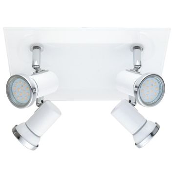 Moderne plafond med fire utbygde LED spotlights. Rett spottene dit du vil ha de for å få best effekt. Fungerer utmerket i baderommet eller en annen plass i hjemmet.