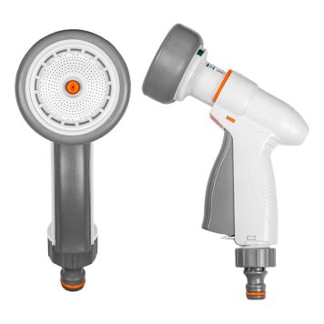 En strålepistol til hageslangen produsert i høy kvalitets ABS-plast med justerbare stråler og vannkontroll. Munnstykket passer like bra for vanning som rengjøring av platting, utemøbler eller bilen.