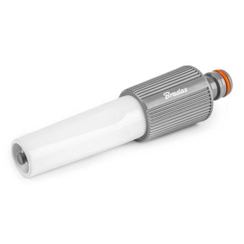 Strålemunnstykke for hageslage som trinnløst kan justere strålene fra hard flat stråle til myk spraydusj. Munnstykket passer like bra til vanning som til rengjøring av terrasse, utemøbler eller bilen.