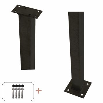 Denne stolpefoten er spesielt tilpasset for rekkverk montert på fundament eller terrassegulv. Den har en flensbredde på 4,5 centimeter og en høyde på 103,3 centimeter, noe som gjør den perfekt for ditt rekkverk. Stolpefoten har en lengde på 9,5 centimeter, og skruer medfølger for montering.