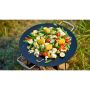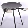 Platen er utført i stål med en unik overflate som gjør den velegnet for utendørs matlaging på bål, gass og kull. De tre bena holder platen stabil når du lager bålmat. Man kan ta av bena hvis man ønsker å plassere stekeplaten over grillen eller gassbrenneren (kan kjøpes separat). Den er videre utstyrt med to håndtak i kromfarget stål, noe som gjør det lettere å flytte platen etter behov.