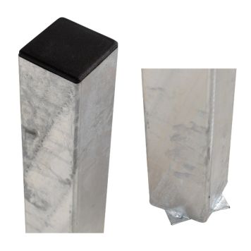 Solid og stødig stolpe for montering av Plus gjerde. Det er inkludert 1 stk. plaststopper for finish i toppen. Merk: Må forbores før montering.