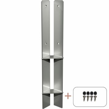 Denne hjørnestolpefoten i varmegalvanisert stål er beregnet for 9x9 centimeter trestolp...
