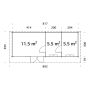 Annekset er laftet med 70 mm tykke vegger. En perfekt plass å bruke som gjestehus når kjære kommer på besøk. Romutformingen med et større rom på 11,5 m2 og to mindre på 5,5 m gjør det mulig å innrede det også som badstuhytte. Annekset kan også benyttes som en koselig hagestue eller en liten hytte, perfekt for avslapning eller gjester.