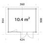 Dimensjoner inn/ut: 10,4 / 10,8 m²