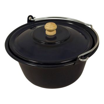 Inviter venner og familie over for en fantastisk suppe eller gryte på hytteturen! Mellomstor gryte til supper, fårikål og lapskaus. Laget i svart emaljert stål, med opphengshåndtak i rustfritt stål. Lokk med treknott. Gryta er laget for bruk over bål.