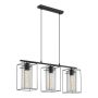 Svart pendel med tre klare glasskupler som henger fast med en stift som skrus inn i armaturet. Takfeste og ledning er også i svart for å matche armaturet. Total lengde på ledningen er 110 cm, men ønsker man å plassere lampen høyere opp er det enkelt å skjule resterende ledning i takkoppen.