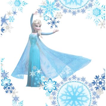 Fyll veggen med en dekorativ tapet med motiv av Elsa kjent fra filmen Frozen. Den magiske tapeten har en hvit bakg...