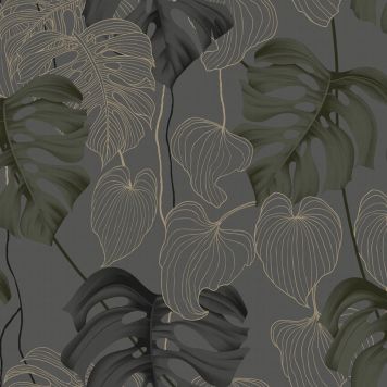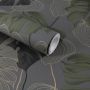 Skap en moderne atmosfære i hjemmet ditt med Sublime tapet Paradise Gray Green. Denne mørkegrønne tapeten er elegant dekorert med gyldne og grønne blader som tilfører både dybde og stil til rommet. Med sitt tidløse design kan du enkelt løfte innredningen og gi hjemmet ditt et unikt preg.