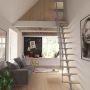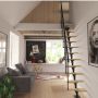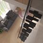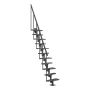 Rett trapp som er enkel å montere og tilpasset rom med begrenset overflate. Trappen har 11 multiplekstrinn og et rekkverk på den ene siden. Det er mulig å fjerne ett eller flere trinn om ønskelig og hvert trinn har en justerbar høyde mellom 19 til 25 centimeter.