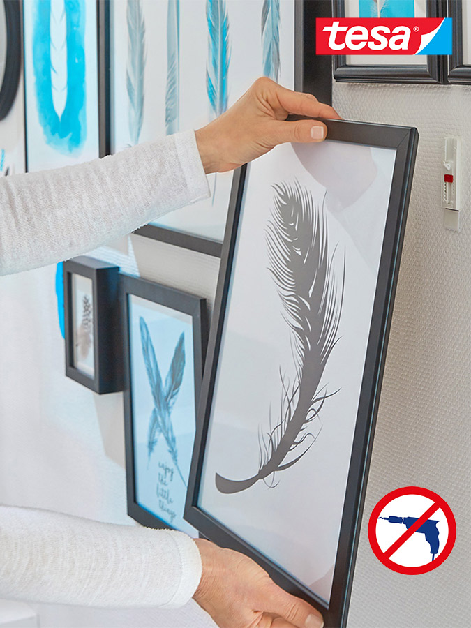 Heng opp nesten hva som helst på veggen uten verktøy. Raskt og enkelt med pålitelig heftgrunn. Det finnes løsninger for nesten alle overflater og oppgaver. Tesa tilbyr teiper med høy kvalitet og smarte opphengsmuligheter som oppfyller kravene for både nybegynnere og erfarne gjør-det-selvere.