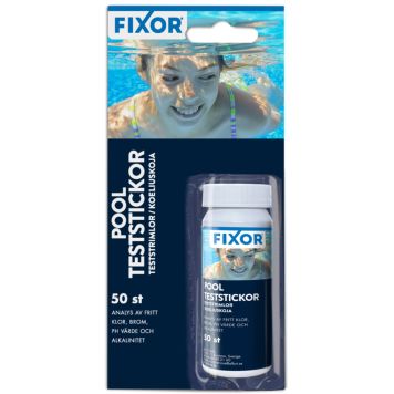 Tester alkalinitet, fritt klor, brom og pH-verdiene i vannet til basseng og spabad. Dypp testpinnen under vannoverflaten. Testputen skal være vendt oppover når den tas opp.