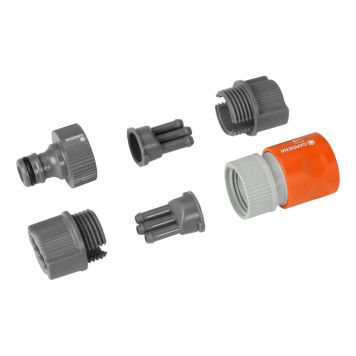 Koblingssett som inneholder alle nødvendige systemfittings for tilslutning til Gardena-sprederslange i begge en...