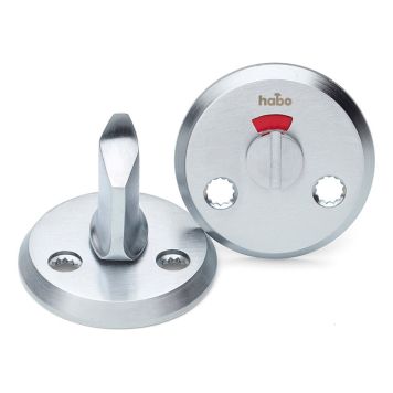 WC-beslag A262 i ny utgave med dekkpropp. WC-beslag laget av messing. Leveres med M4 skruer for gjennomgående innfesting, samt treskruer. Beregnet for låskasse 6414, 62014 og 62020. Tilpasset dørtykkelse 38-42 mm.