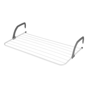 Smart tørkestativ som passer på en radiator, balkong, badekar eller olike rekkverk. Enkel konstruksjon med justerbart stativ som kan felles sammen når tørkestativet ikke er i bruk.