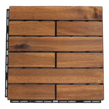 Gi uteplassen din et friskt og naturlig utseende med disse terrassebrikkene i akasie. Med en bredde på 30 centimeter og en lengde på 30 centimeter er terrassebrikkene perfekte for å skape en elegant og holdbar overflate på balkongen, terrassen eller i hagen din. Akasie er en robust og værbestandig tresort som gir en varm og innbydende følelse. Disse terrassebrikkene er enkle å montere og kan raskt forvandle hvilket som helst utendørsområde. Perfekt for deg som ønsker å modernisere utemiljøet ditt uten problemer!