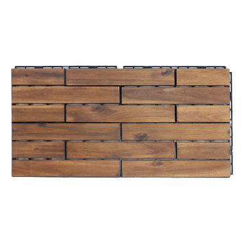 Forny uteplassen din med disse elegante terrassebrikker i akasie. Med en bredde på 30 centimeter og en lengde på 60 centimeter er balkongplatene perfekte for å skape en jevn og vakker overflate på balkongen, terrassen eller i hagen din. Akasie er en robust og holdbar tresort som gir en naturlig og varm følelse til utemiljøet ditt. Disse trallflisene er enkle å montere og kan raskt forvandle uterommet ditt til et innbydende sted for avslapning og sosialisering. Med sitt tidløse design passer de inn i alle typer miljøer og stiler!