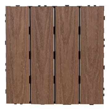 Oppdag fordelene med disse vedlikeholdsfrie terassehellene i kompositt. Flisene måler 30x30cm og har en vakker, glatt trestruktur. Et ekte kvalitetsgulv på alle måter. Trehellene er enkle å montere og kan enkelt tas fra hverandre, for oppbevaring i det kaldeste været