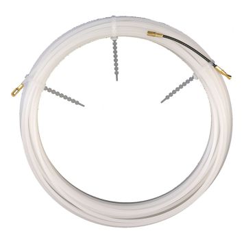 En dra fjær laget av gjennomsiktig nylon med draøye i begge ender. Du bruker denne nylonfjæren for å trekke elektrisk kabel i fleksible rør eller stive rør.