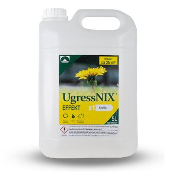 UgressNIX Effekt er et kraftfullt middel som brukes mot ugress og annen uønsket vegetasjon. Ugressmiddelet er basert på 12% eddik og er biologisk nedbrytbart. Middelet slår raskt ut vekstens bladverk, samtidig som det virker lenge. UgressNIX Effekt vannes/sprøytes direkte på uønsket vekst og etter noen timer begynner veksten å brytes ned.