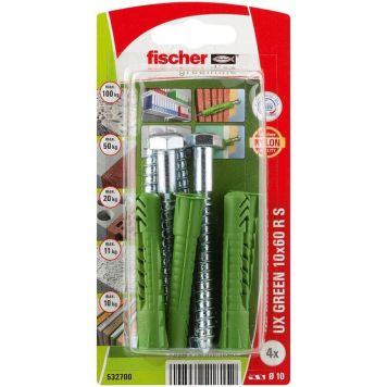 | Produktnavn | UNIVERSALPLUGG FISCHER UX 10X60 RS SKRUE 4STK |