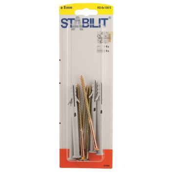 Denne universalpluggen fra Stabilt brukes til faste byggematerialer og murverk. Når skruen strammes under installasjonen, ekspanderer pluggen og klemmer seg fast inne i borehullet. Pluggen har også en innebygd rotasjonslås som forhindrer pluggen i å rotere i borehullet, noe som gjør pluggen enkel å jobbe med og sikrer en solid festing. I pakken følger det også med tre skruer som passer perfekt til pluggen.