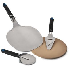 For å lage og håndtere pizza på grillen er det et must med en pizzastein og veldig praktisk med en pizzaspade.