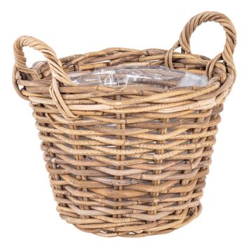 Rustikk blomsterpotte laget av naturlig rotting. Den fungerer like bra å bruke utendørs som innendørs. I tillegg til å være en potte, kan den også brukes til oppbevaring av eksempelvis tepper.