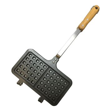 Et dobbelt vaffeljern i robust aluminium med langt håndtak så du ikke brenner deg. Dette vaffeljernet er perfekt for bruk over grillen. Den holder på varmen og har en sjenerøs overflate for vaflene dine.