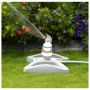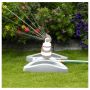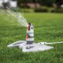 En liten, stillegående og praktisk vannspreder med roterende hode og 4 stråler. Sprederen gir vann til en overflate på opptil 350 m² (Ø21m) og kan stilles inn på vanning, for hel- eller halvsirkel. Kan kobles til andre enheter via sekundærslangeuttaket, velg å koble sammen med andre vannspredere eller sett på lokket som følger med for kun bruke det ene slangeuttaket.
