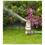 En liten, stillegående og praktisk vannspreder med roterende hode og 2 stråler. Sprederen gir vann til en overflate på opptil 320 m² (Ø20m) og kan stilles inn på vanning for hel- eller halvsirkel. Kan kobles til andre enheter via sekundærslangeuttaket, velg å koble sammen med andre vannspredere eller sett på lokket som følger med for kun bruke det ene slangeuttaket. Leveres med et praktisk jorspyd for stabil montering.