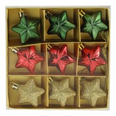 GEROMAJULETREKULER STJERNER RØD/GULL/GRØNN 9STK129,00 kr -