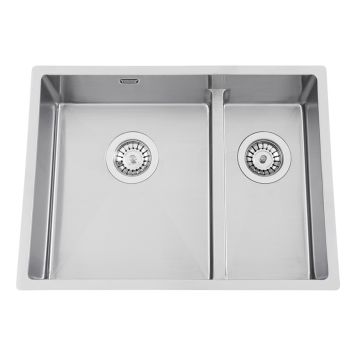 Radius 60 K V X Nickel er en kraftig diskboks i 1,2 mm rustfritt stål med en stilig børstet overflate. Oppvaskkummen har en dobbelvask, men med en lav mellomvegg for bedre utnyttelse av hele vasken da en stekeplate eller rist enkelt kan bløtlegges og vaskes.