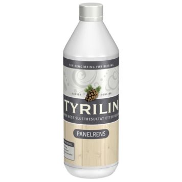 Tyrilin Panelrens benyttes til rensing av ubehandlede, gulnede og tidligere behandlede flater før ny behandling. Produktet er et spesialutviklet rensemiddel som fjerner såperester og urenheter på en effektiv måte. På nytt treverk fjernes harpiks i overflaten, og man får et bedre, jevnere innsug av overflatebehandlingen. Tyrilin Panelrens blandes med vann i forholdet 1 del til 10 deler vann. Blandingen påføres flaten med klut. Tørk deretter over med en klut oppvridd i rent, lunkent vann.