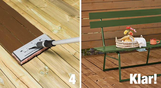 Nå har du en barbeint-vennlig terrasse som står i mot vær og andre påkjenninger. Da er det bare å nyte til samme jobben skal gjøres igjen - helst to ganger i året, vår og høst.