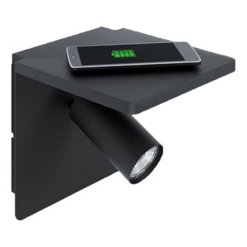 Leselampen Ciglie fra Eglo er en moderne og trendy lampe. Dette er en enkel og smart lampe som passer utmerket på veggen i soverommet. Lampen har en praktisk hylle og er utstyrt med QI lader så du enkelt kan lade din telefon. Du legger din smartphone på hyllen så lades den.