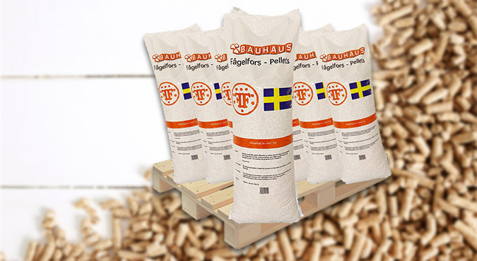 Pelletsen bør oppbevares på et tørt sted, hvor luftfuktigheten ikke overstiger 10 %. Oppbevaring av pellets på et fuktig sted eller et ekstremt kaldt sted vil påvirke deres evne til å brenne. Ideelt sett lagrer du pellets innendørs - for eksempel i en bod eller i et grovkjøkken. For å unngå at pellets går i stykker og blir til sagflis, vær forsiktig når du håndterer posene. Det er også en god idé å ha et lite antall pellets i nærheten av pelletsovnen, klar til å fylle i beholderen. Det finnes mange pene oppbevaringsløsninger for dette formålet.