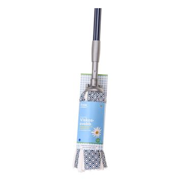 Mopp med teleskopskaft 85-150 cm. Prikkene på viskosemoppen skrubber bort smuss.